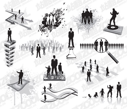 eps format, keyword: vector material, business people, successful people, the white-collar men, arrows, managers, silhouettes, figure silhouettes, magnifying glass, DJ, aircraft, high-rise buildings, commercial, human evolution, books, and the tide patterns, trends elements