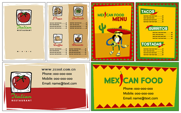 eps format, including jpg preview, keyword: Vector menu, business cards, cards, logo, tomatoes, Mexican style, red pepper, cactus, vector material